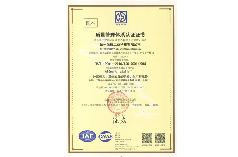 公司2004年通过ISO9001:2008质量管理体系认证,同年通过扬州市高新技术企业认定,2005年被科技部认定为国家火炬计划数控金属板材加工设备产业基地模具生产企业,2009年5月企业被认定为高新技术企业,2012年被认定为中国重点骨干模具企业,同年通过ISO14000环境管理认证,2014年被评为AAA级信用企业。是中国模具工业协会、中国热处理协会、中国钣金协会、江苏3D打印战略联盟成员单位。2008年企业顺利实行股权重组,2012年全资并购江苏润春电气有限公司,工厂发展步入新台阶。从此,以市场为导向,以科技为突破口,向管理要效益成为企业创新发展的主旋律。